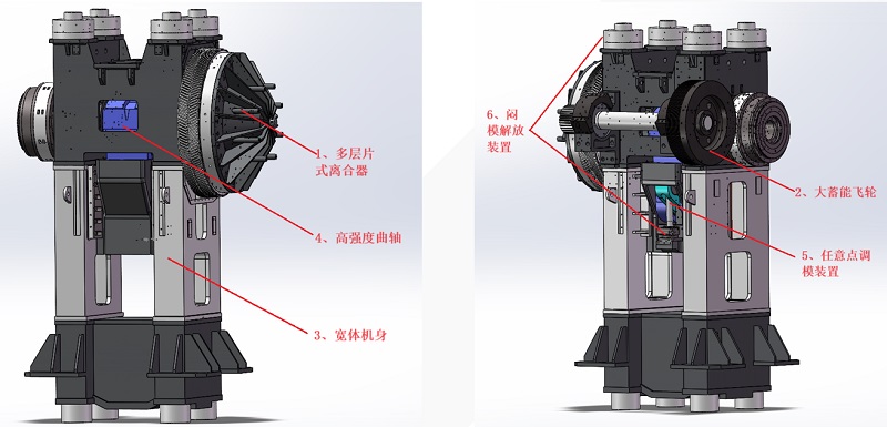 演講末尾,著重介紹了產(chǎn)品特點(diǎn),如:采用多片式離合器、飛輪儲(chǔ)能大、擁有超過同噸位機(jī)器的沖壓能力、曲軸和機(jī)身加大加粗、機(jī)身變形量少等。
